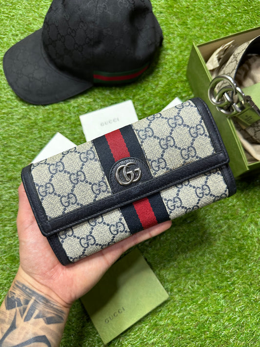 Gucci Ophidia GG Supreme Zip Around Wallet Blue/Red